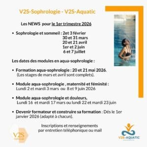 -Le deuxième, en aqua-sophrologie. Là où beaucoup pratique dans le bien-être au niveau du mental et des visualisations, je travaille sur l’intégration corporelle et la régulation profonde de l’être.